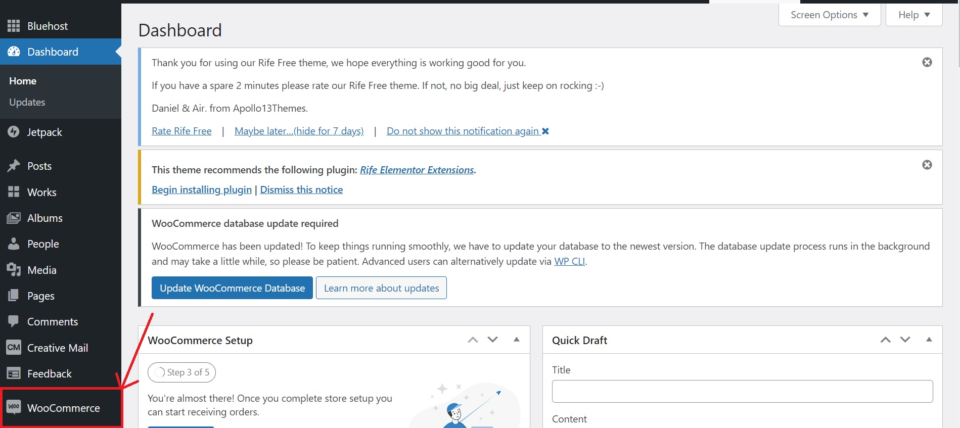 - Select "WooCommerce" on the left menu panel.
