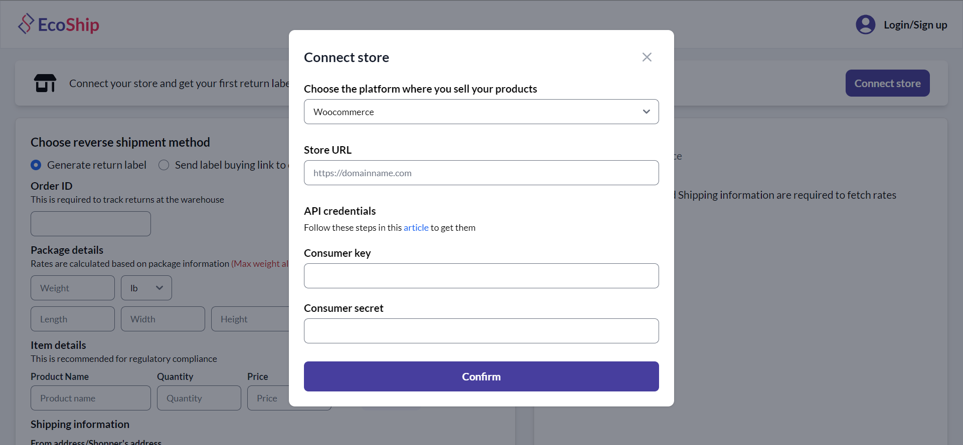 Connecting your store is important to fetch product & shipping information and helps you in creating reverse shipments for your orders without hassle. Watch this video or follow the steps below to connect your WooCommerce store.