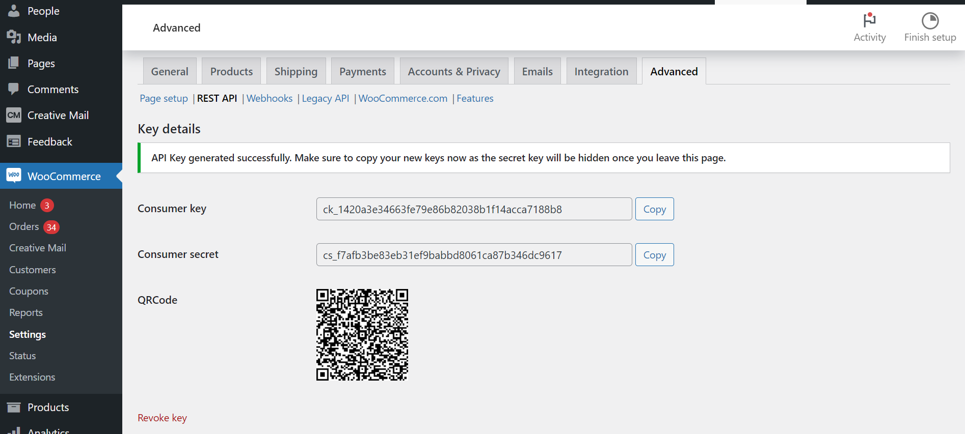 - Copy the Consumer key and Consumer secret that is generated. These credentials are unique to each key you create and will be required for smooth functioning of EcoShip.