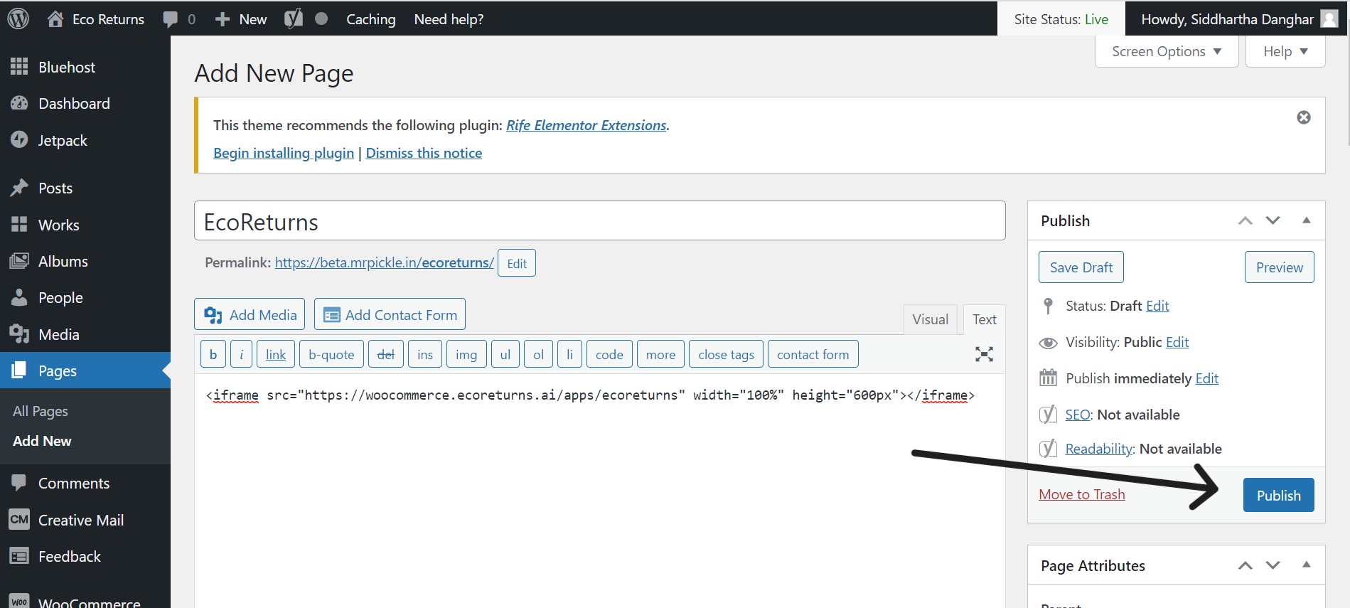 Follow the below steps to add your returns portal URL in WooCommerce.