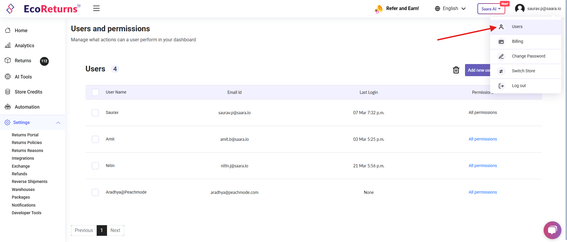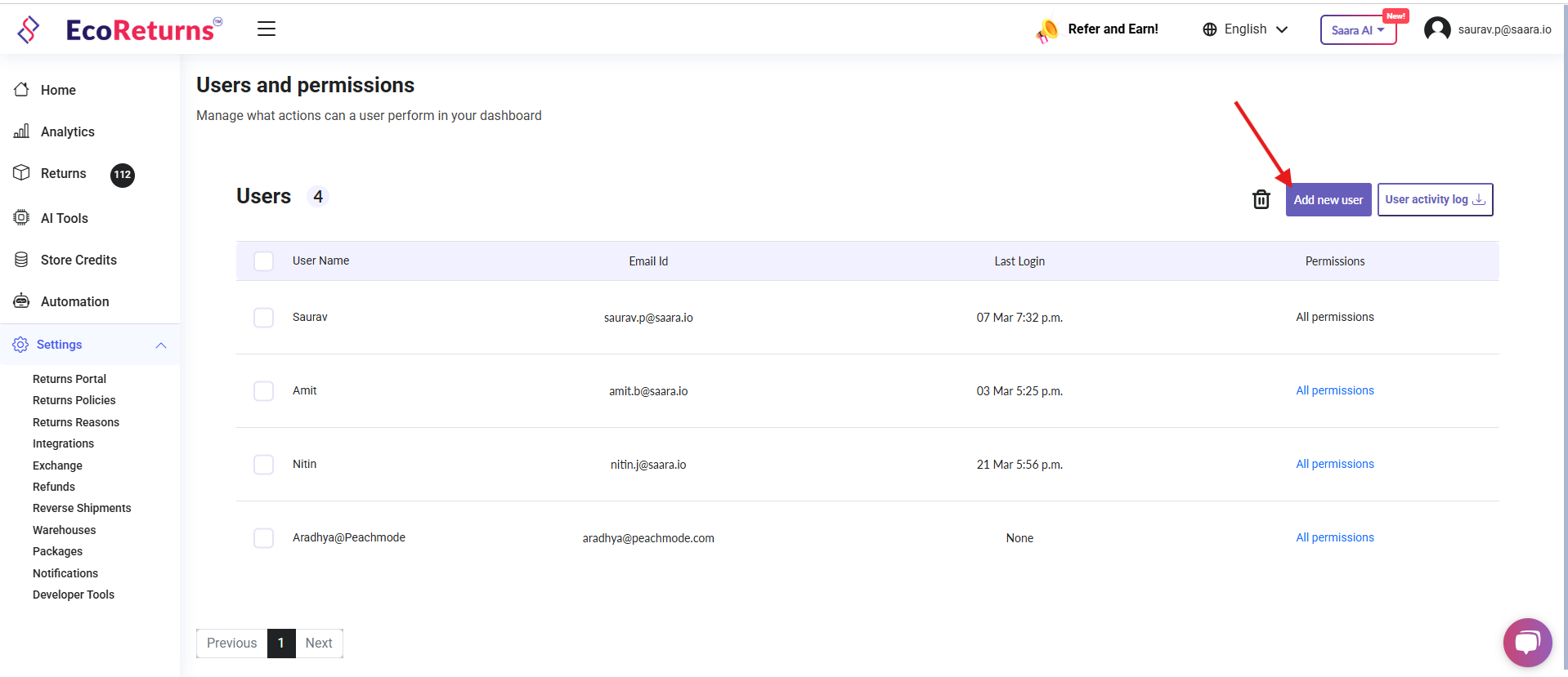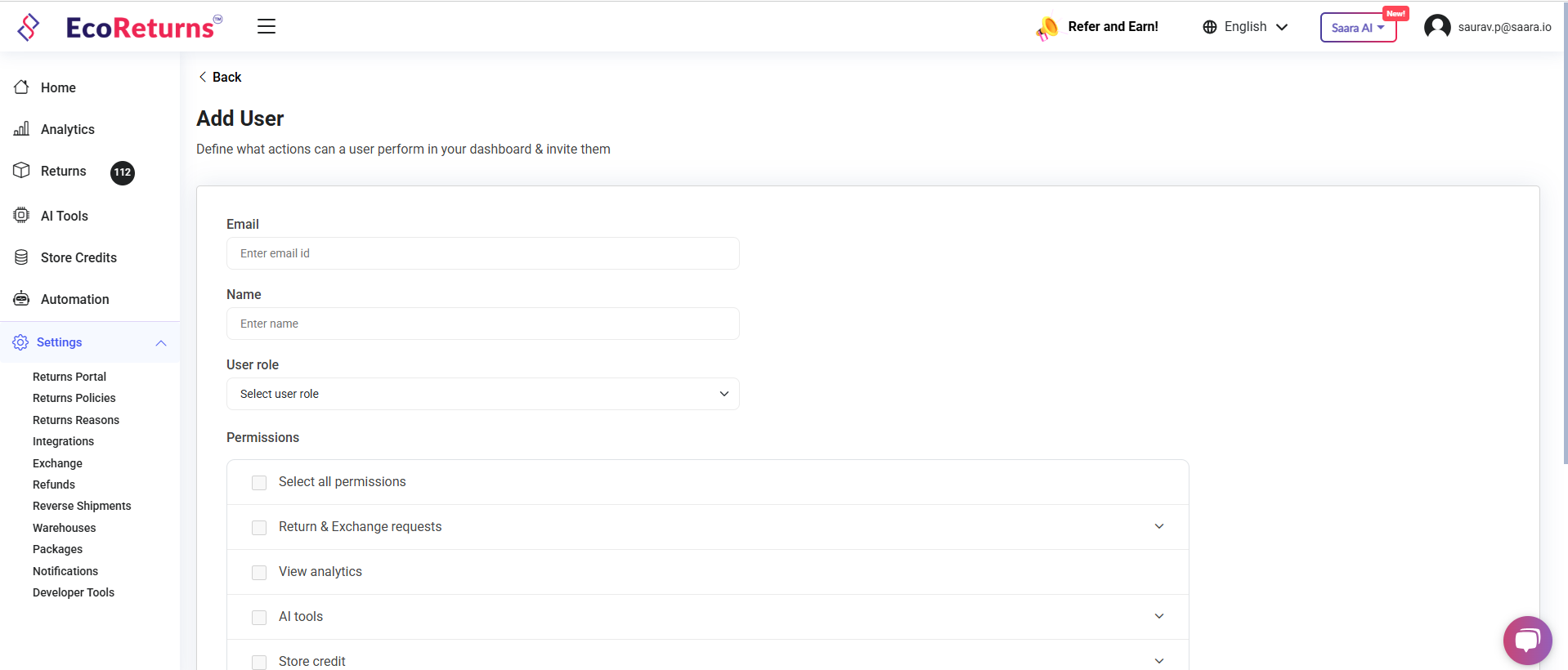 Efficient team collaboration is essential for managing returns seamlessly. By adding multiple users to your merchant account, brands can assign specific roles and access permissions, ensuring secure and streamlined return operations.