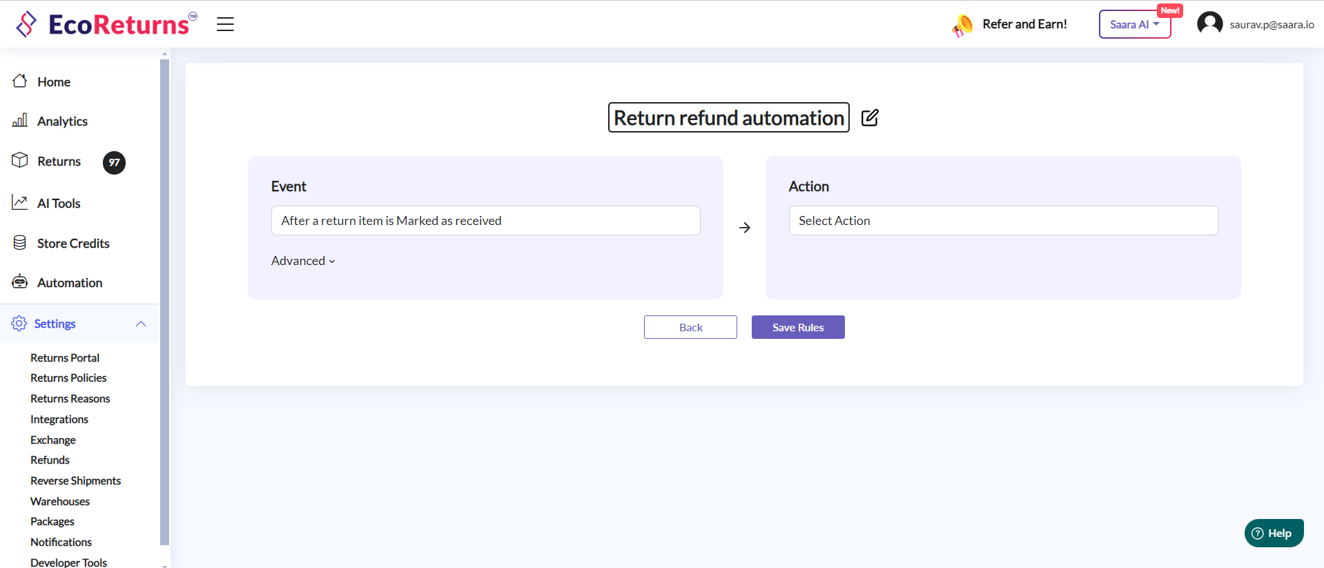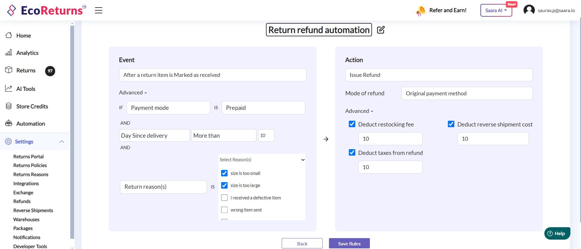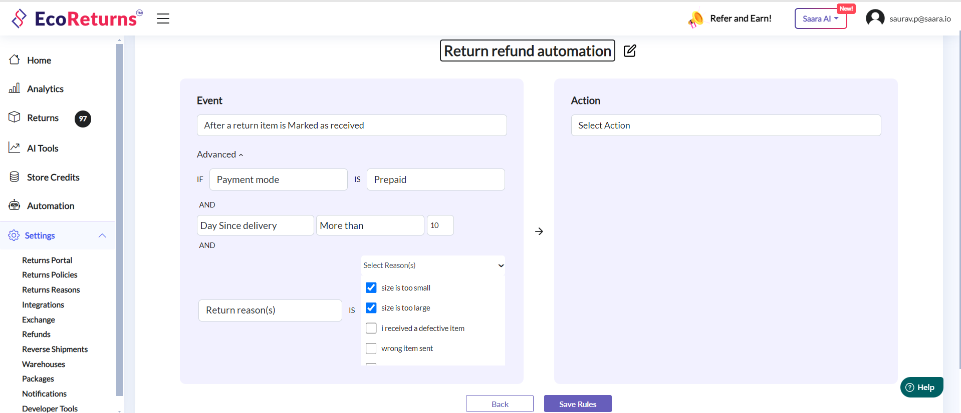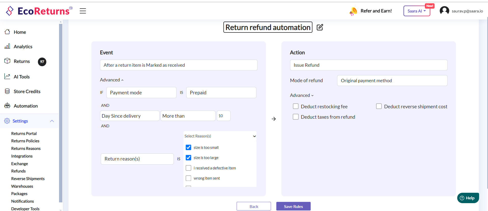 - Save Your Rule: After configuring both the conditions and actions, be sure to save your rule. This ensures that your automation rule is implemented and ready to enhance the efficiency of your return and exchange processes.