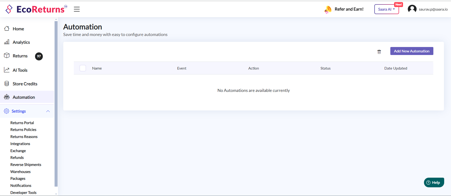 - You can rename the automation as Return refund automation by clicking on edit icon beside automation name.