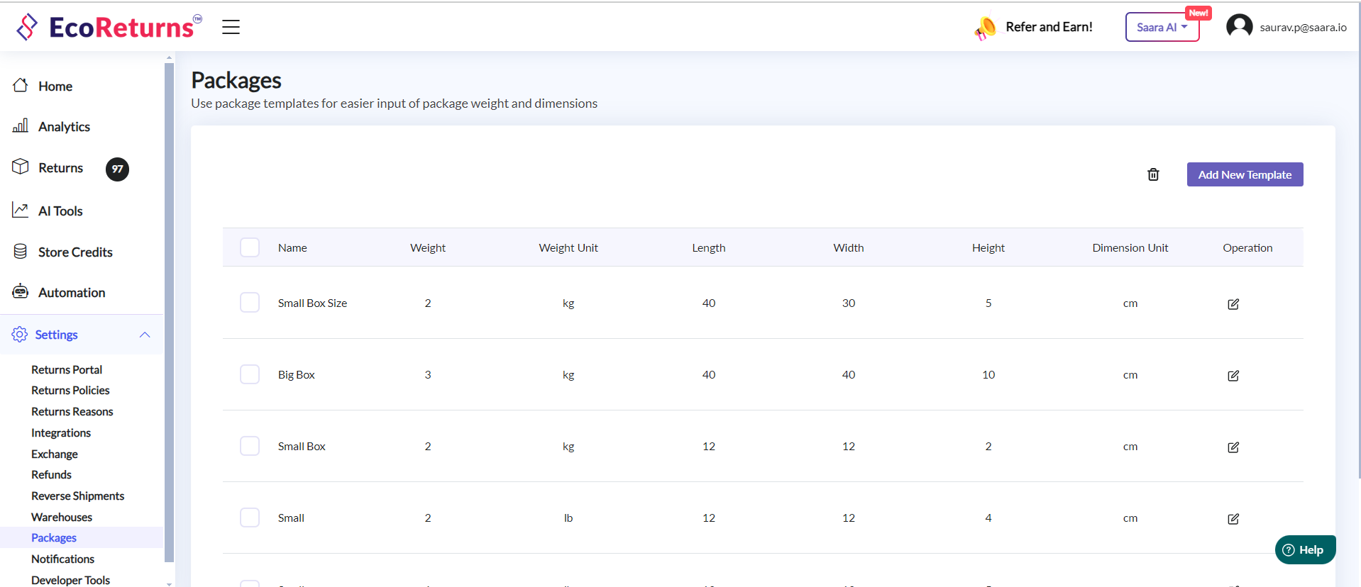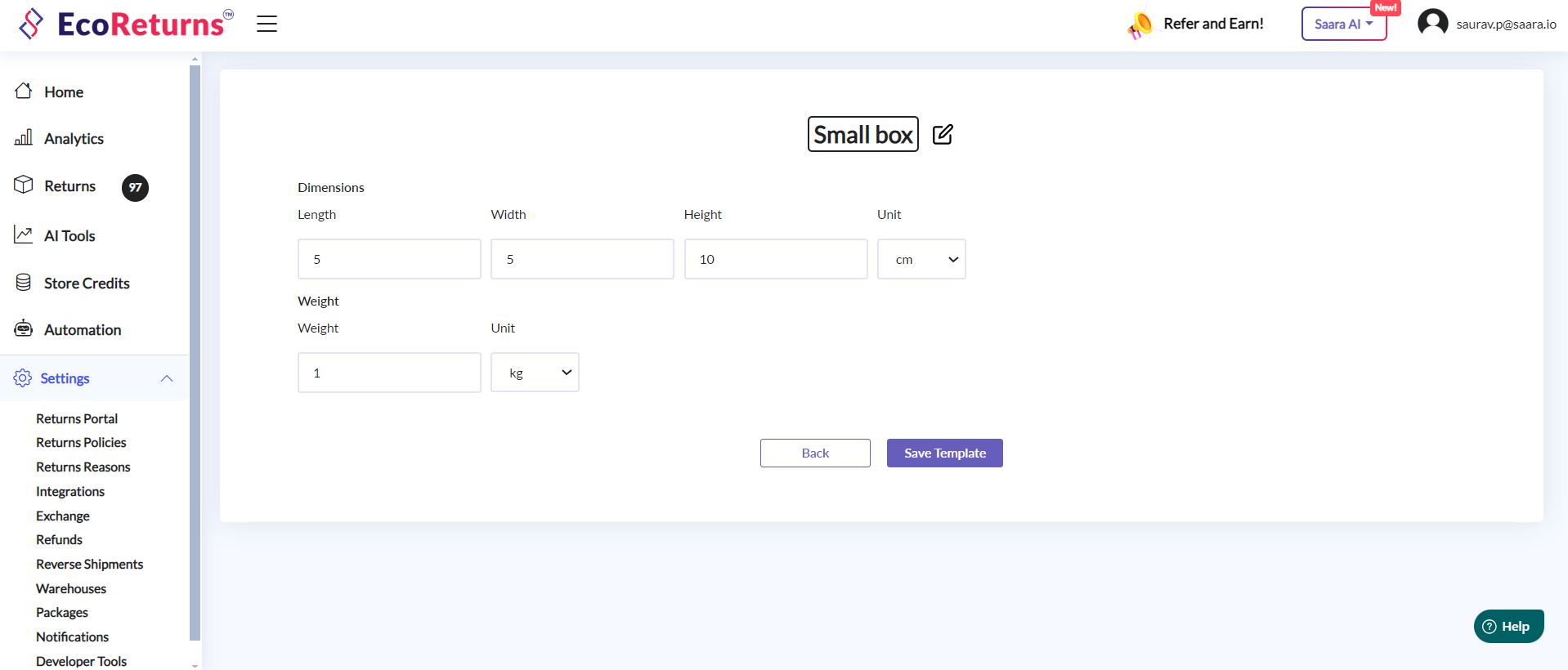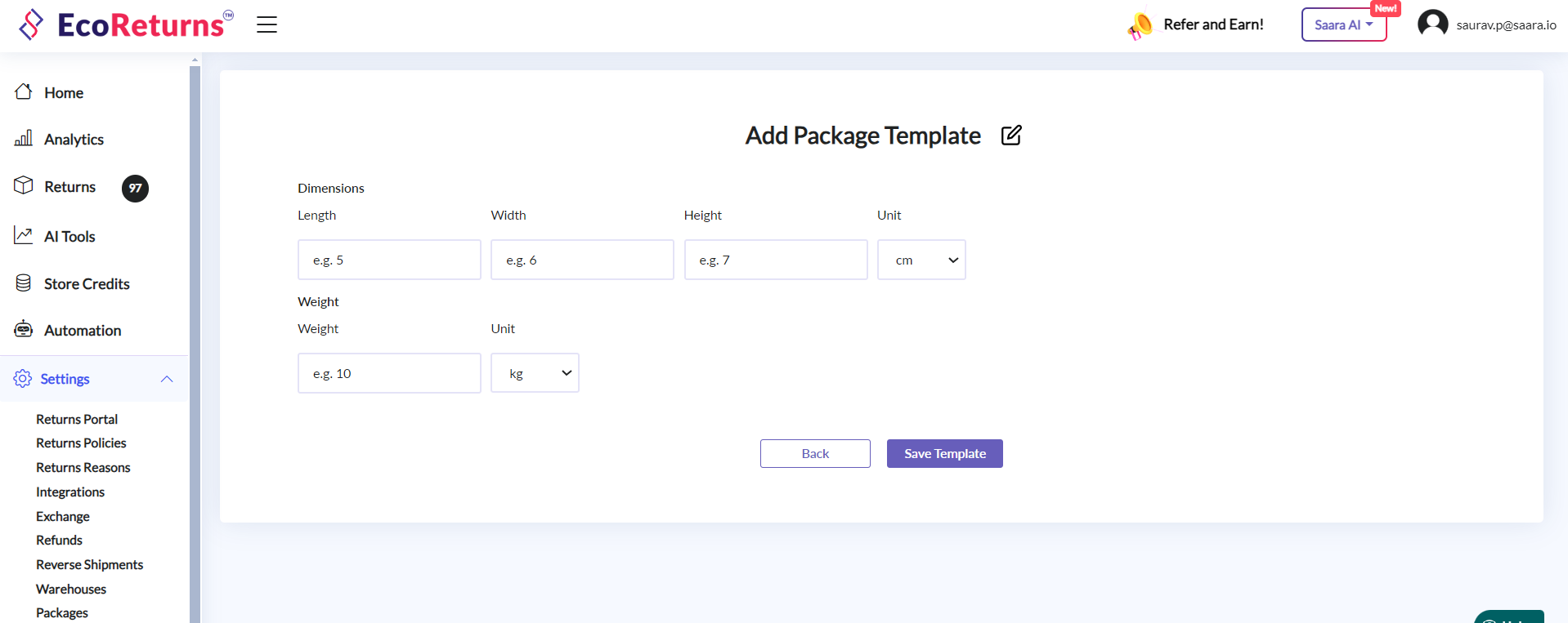 EcoReturns makes it extremely easy & efficient for you to process returns by creating a package template and using it while creating a reverse shipment.