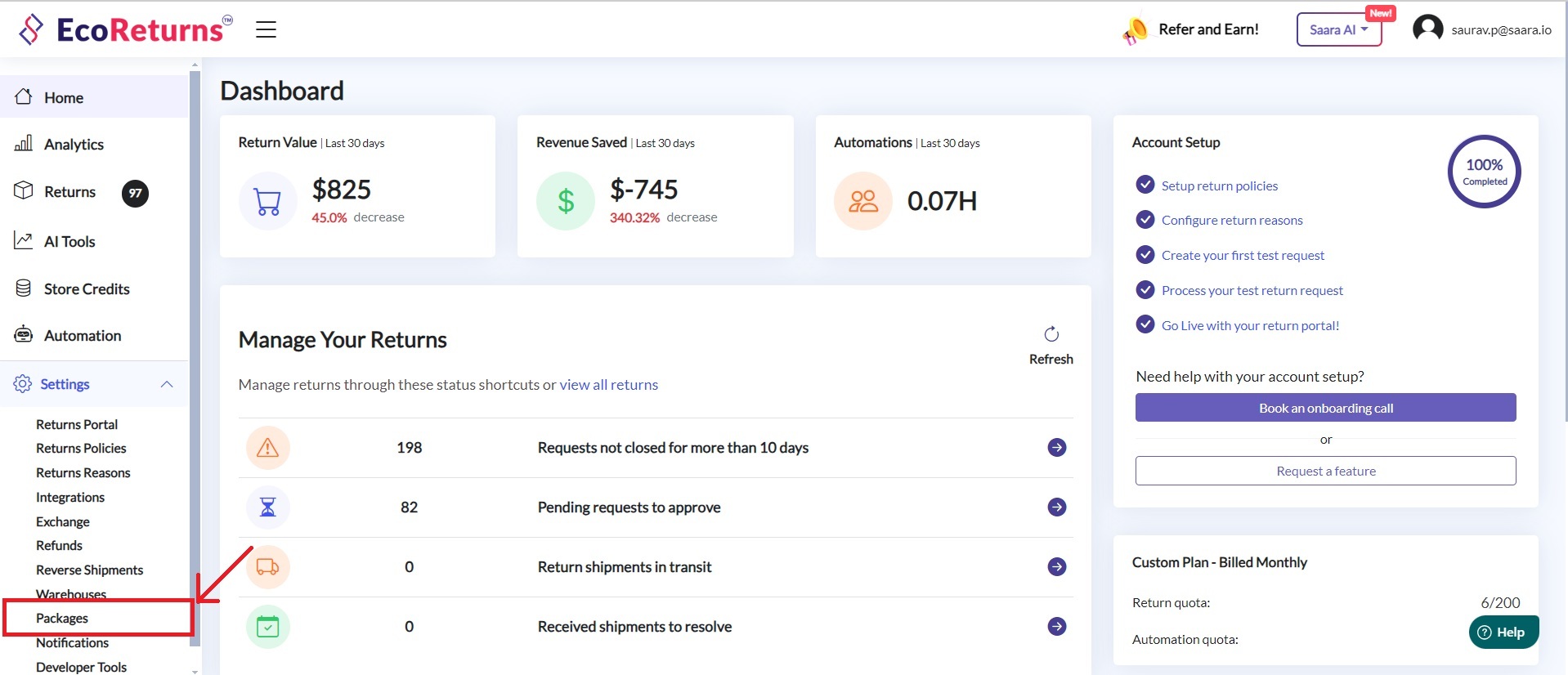1. Login to your EcoReturns dashboard.